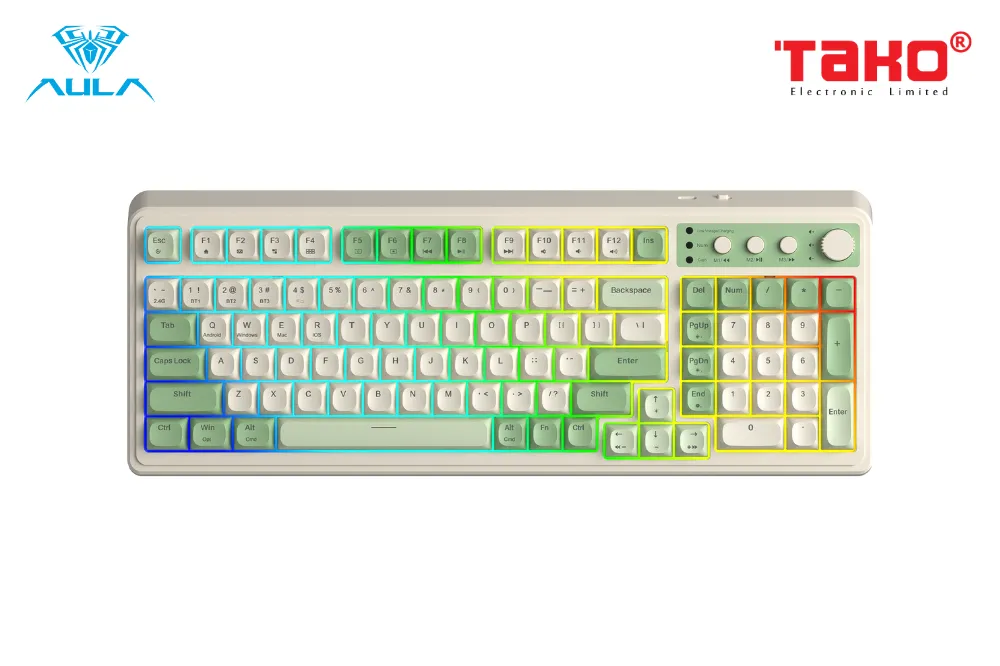 AULA S99 (6944) BÀN PHÍM GIẢ CƠ GAMING 3 MODE (Phiên bản Xanh lá + Be)