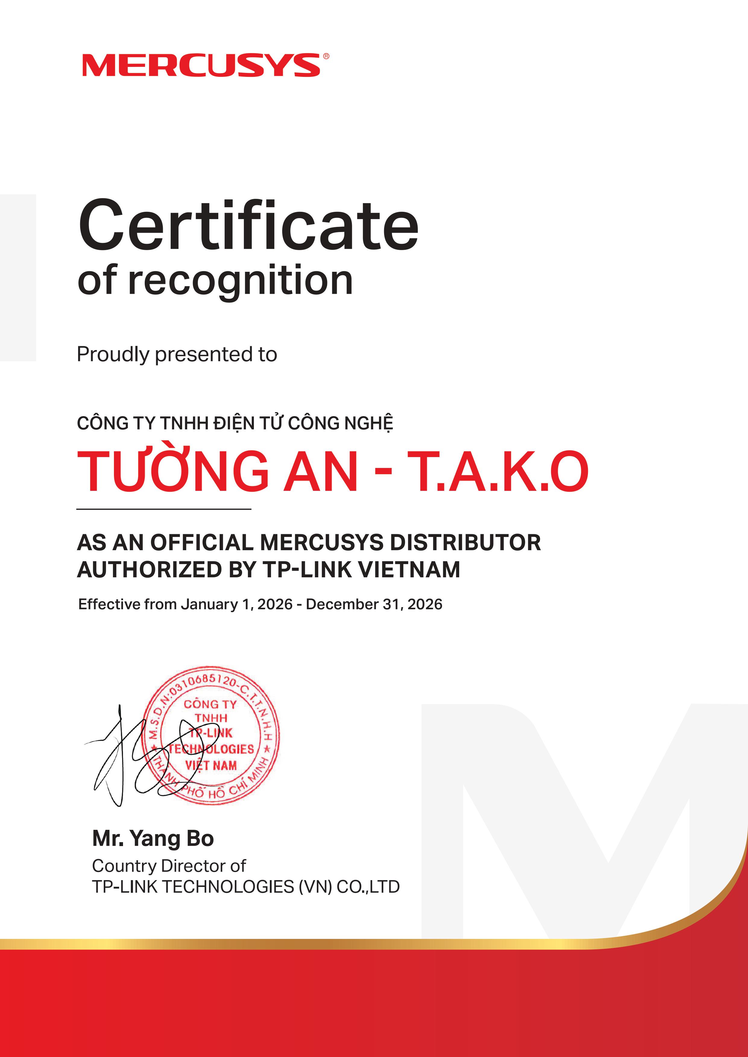 Chứng Nhận Nhà Phân Phối Mercusys Tại Việt Nam